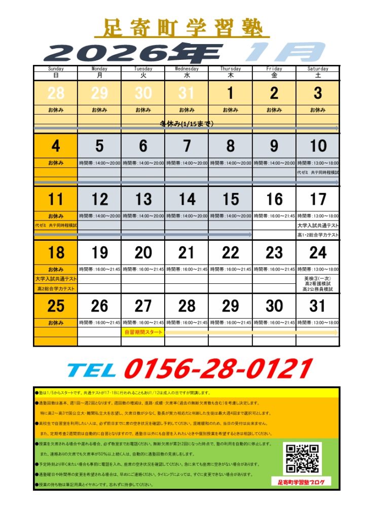学校は1月の授業が始まったところですが、もう期末テストが見えてきていますね。
