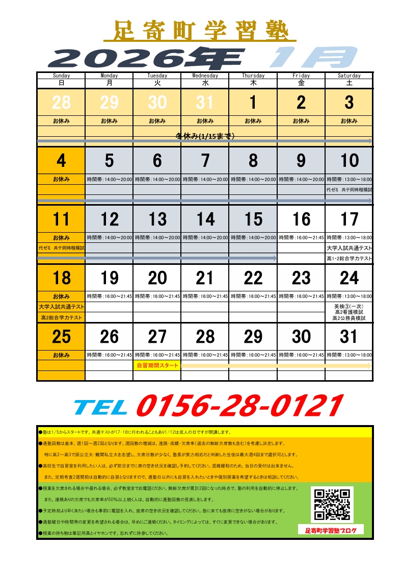 我々は早めにテスト対策を準備してカレンダー遅刻の汚名を返上したいとことです。